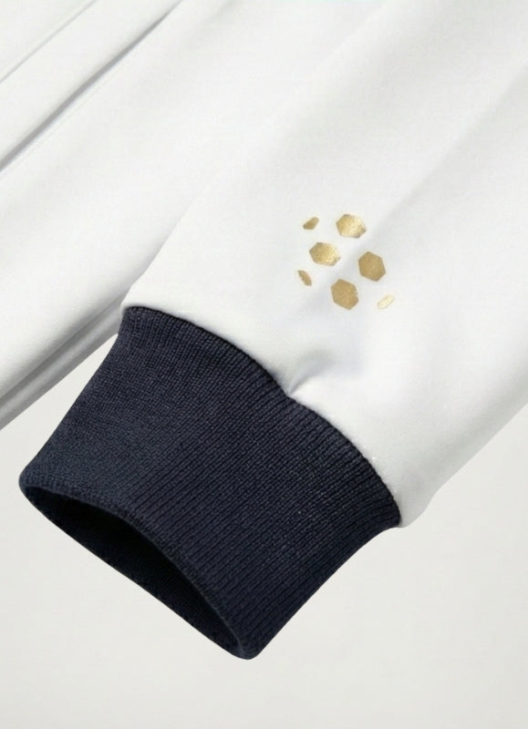 - Ribbed cuffs and waist
